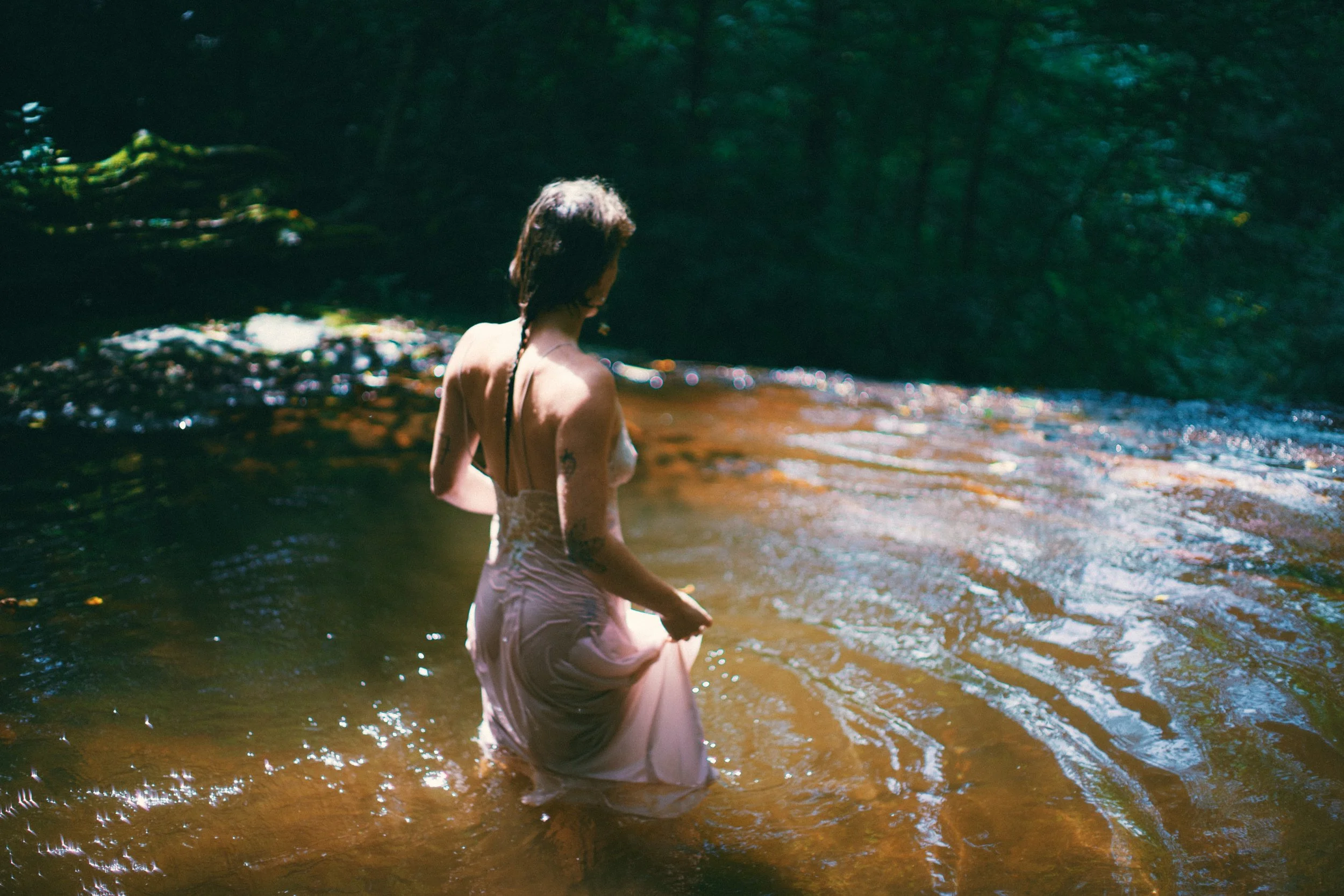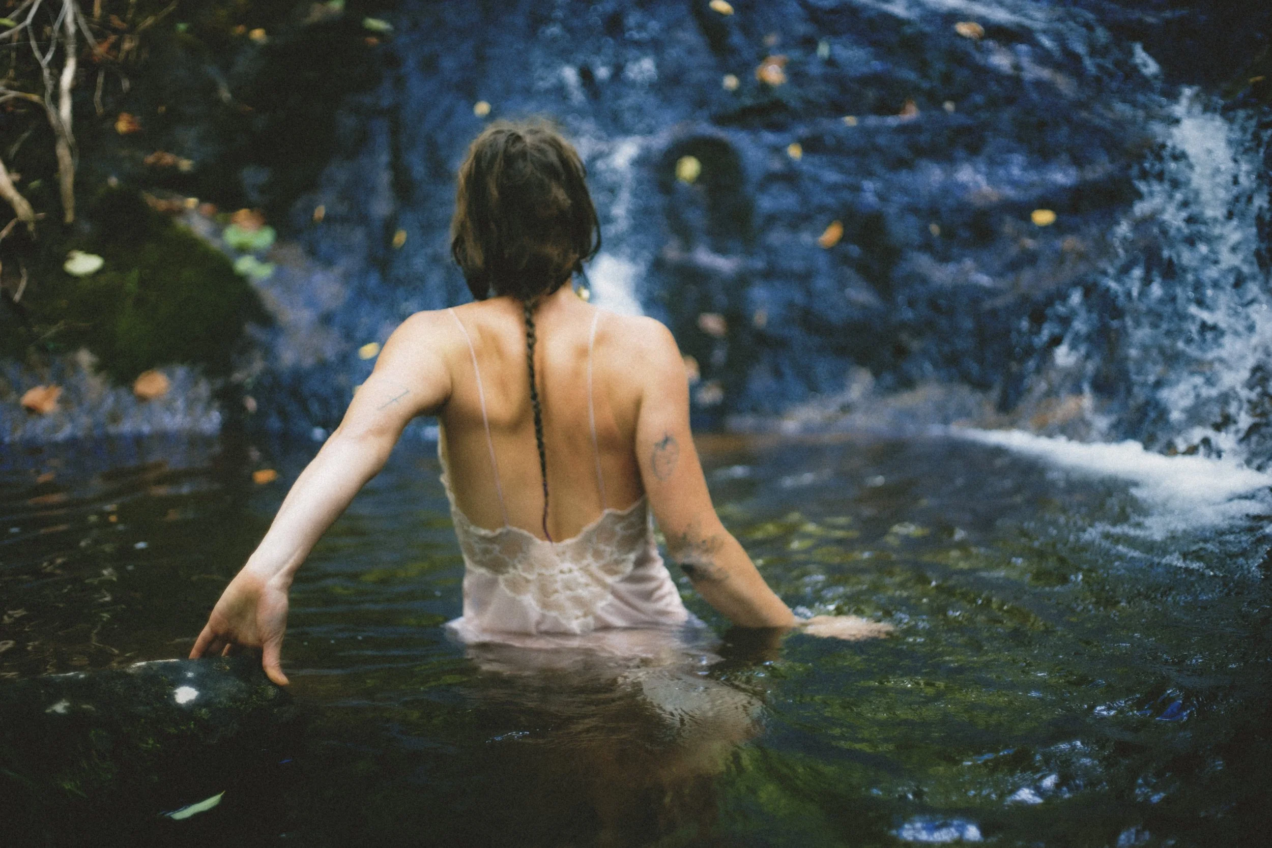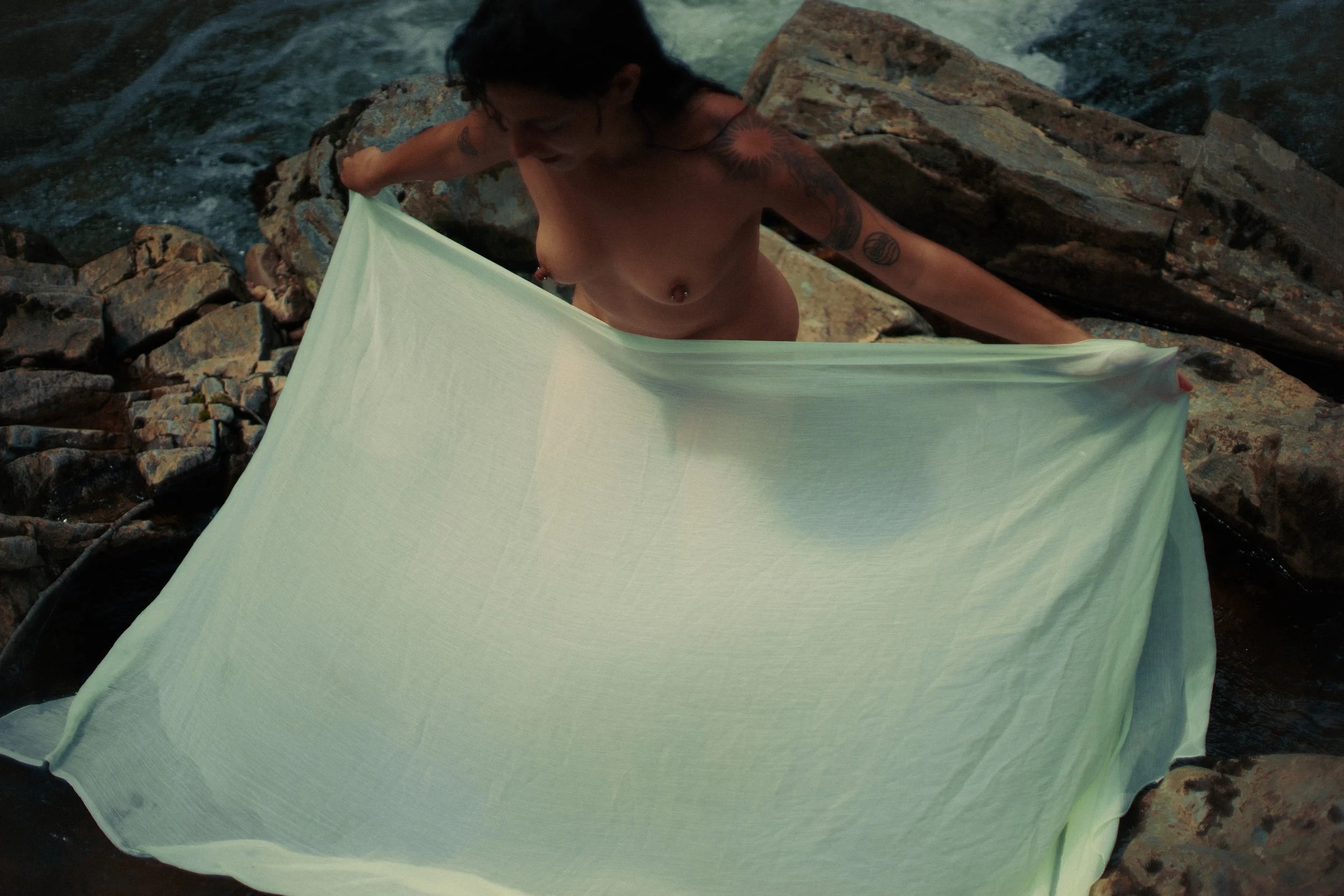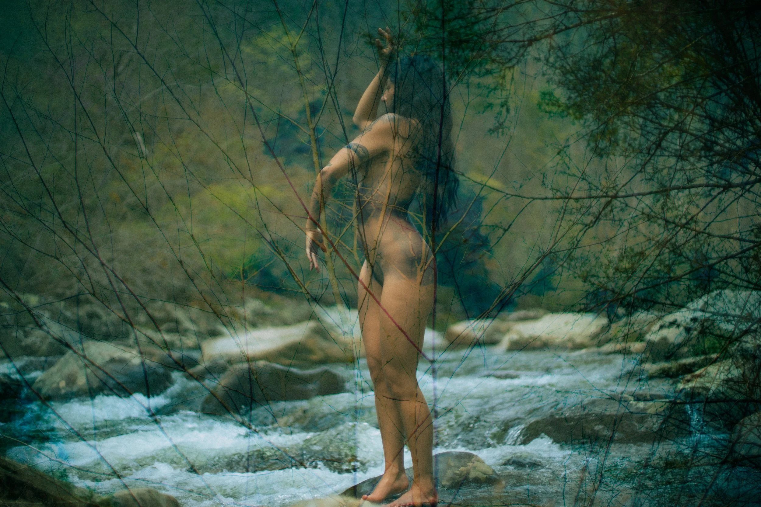 Soul Portraits in wild places—predominantly women, sometimes couples by request. Sessions unfold outdoors, often nude if you choose, and always at your pace. We walk, talk, drink tea, wade into water, follow weather, and let the land decide. No staging. Minimal direction. I place the body; the body finds itself.