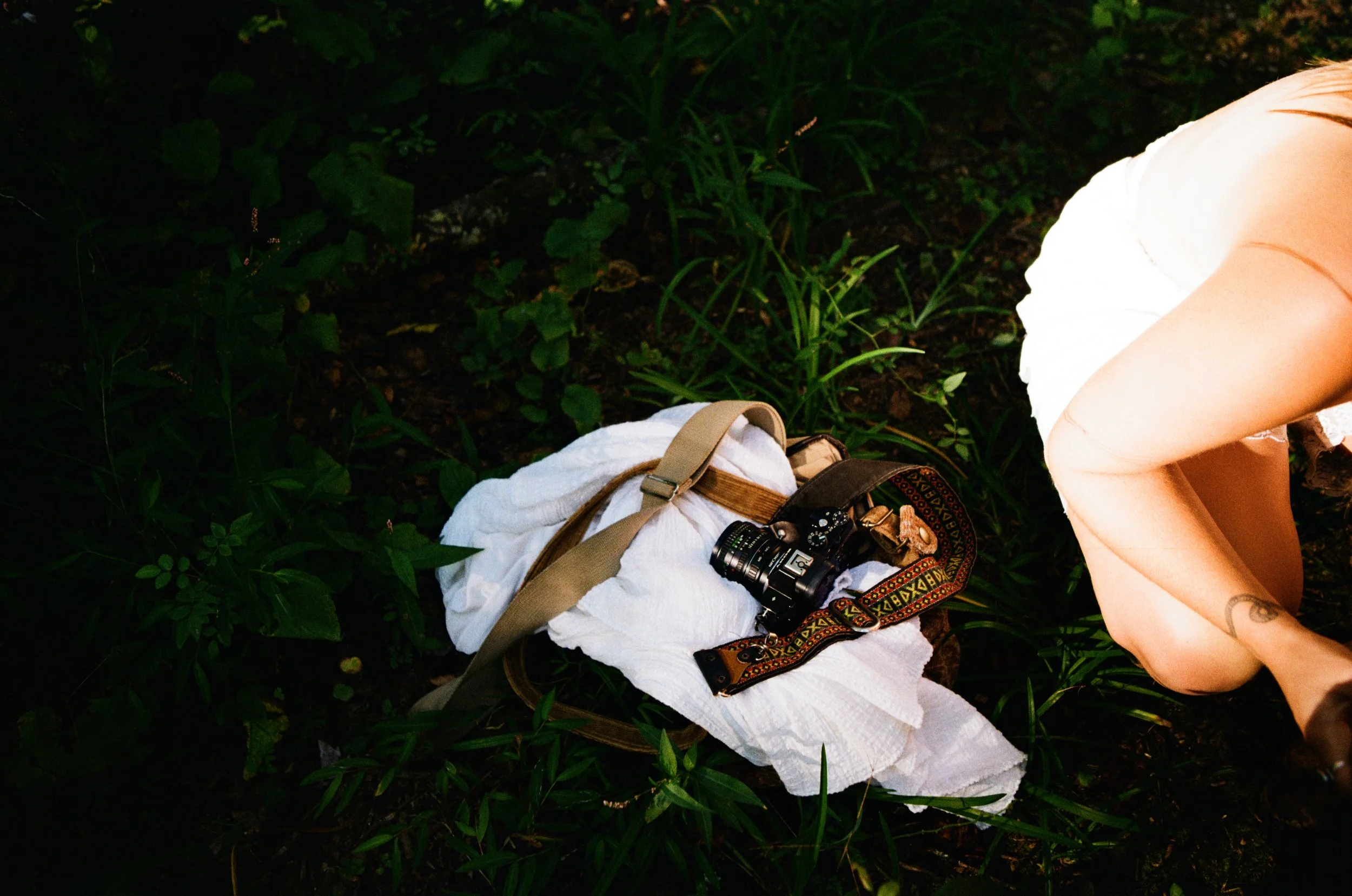 I shoot with vintage glass, film, and manual processes. Old lenses from other eras, light leaks, grain, and the slow craft that invites a timeless, mythic quality—sunrise earth tones, soft blacks, moss and gold.